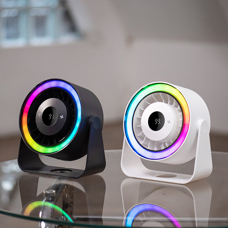 Oriday 2-in-1 Desk and Wall Fan, large capacity battery for long-lasting power, 5-speed quiet and strong wind, 3 adjustable light modes, adjustable angles and automatic oscillation, counterclockwise rotating fan cover for easy cleaning