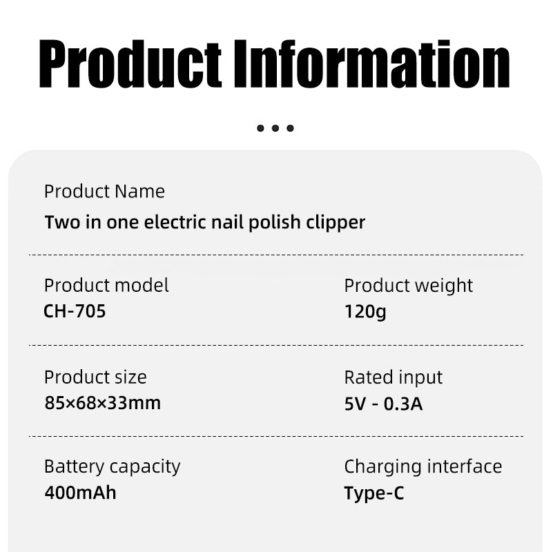 Nombre del producto: Cortauñas eléctrico 2 en 1 con brillo para uñas