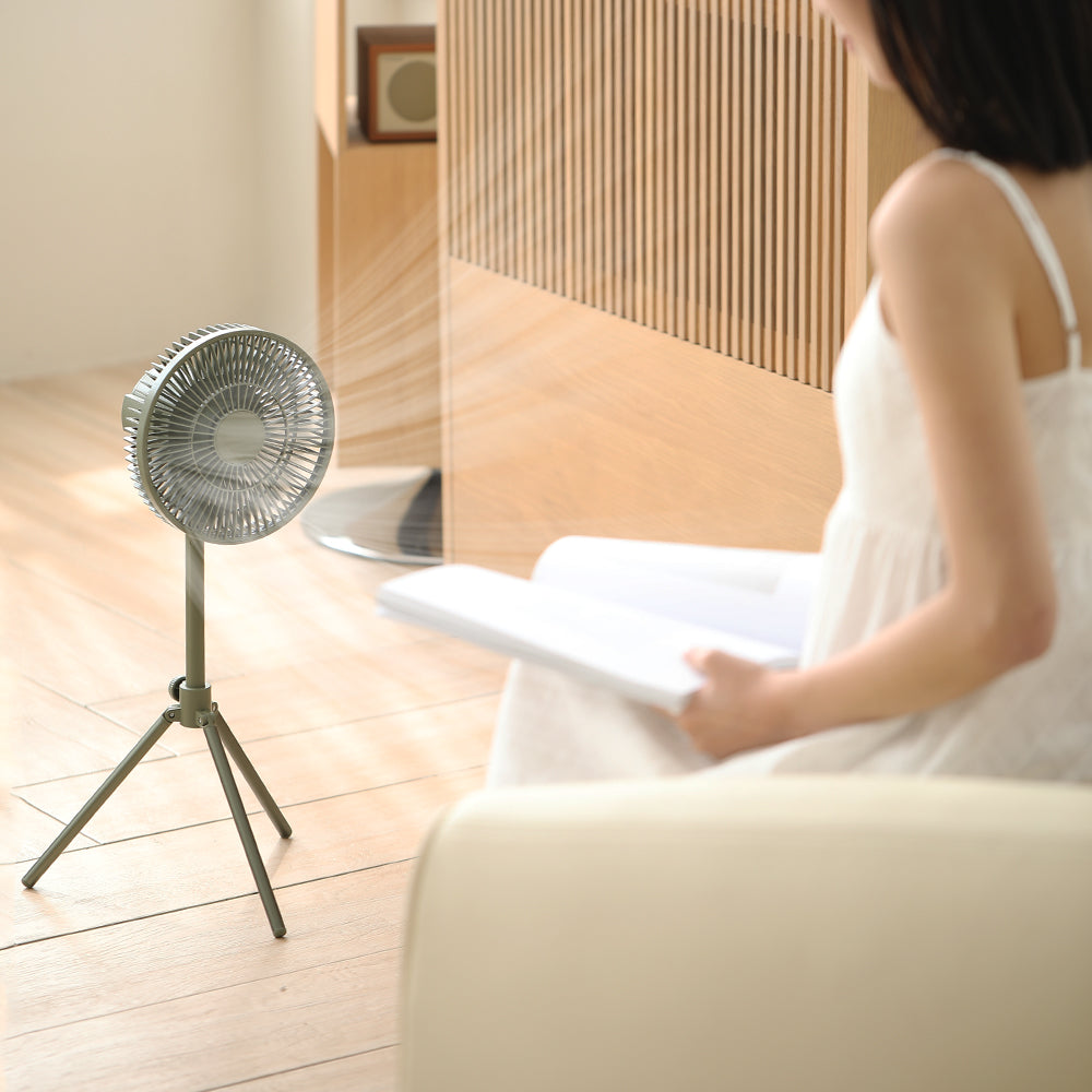 Ventilateur extérieur trépied Oriday|Ventilateur rechargeable et pliable ・ Télécommande, oscillation, veilleuse et répulsif anti-moustiques ・ Idéal pour le camping et la maison avec longue autonomie
