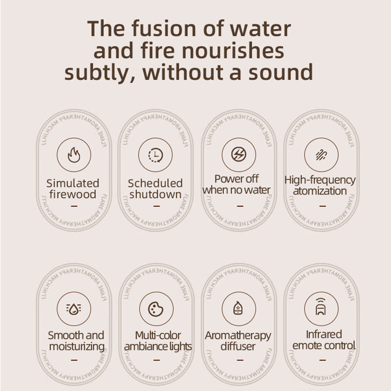 1. 高周波ミスト、細かく潤う、水で再現されたリアルな炎演出。