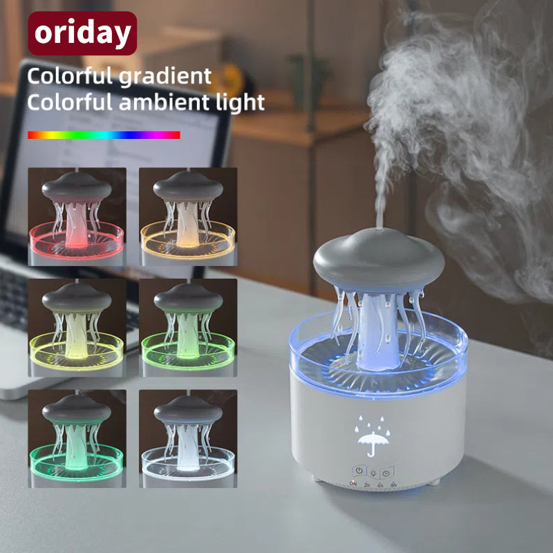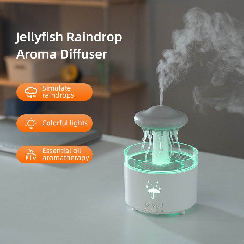 【静音・大霧量】クラゲと雨滴の回転アロマディフューザー|七色の雰囲気ライト+エッセンシャルオイル拡散|家庭用寝室加湿器