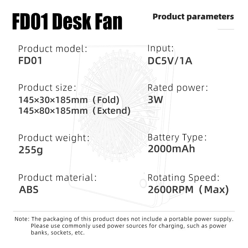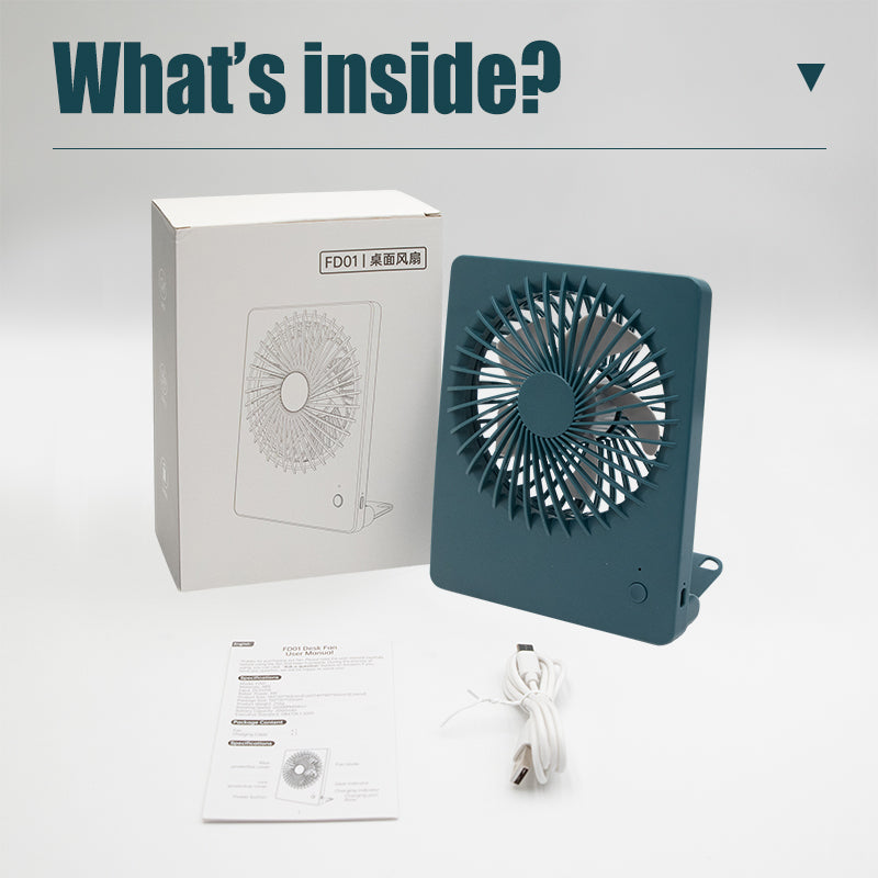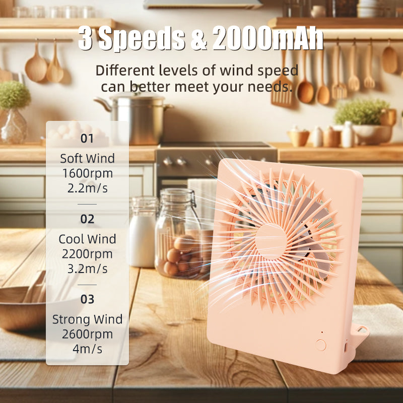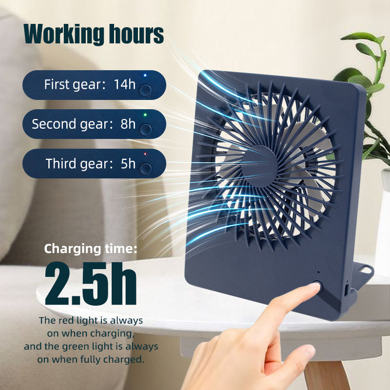 oridayの四角いデスクファン、静音で強力な冷却力、充電可能でかわいく、首振り可能で折りたたみ可能、男女兼用の携帯用品