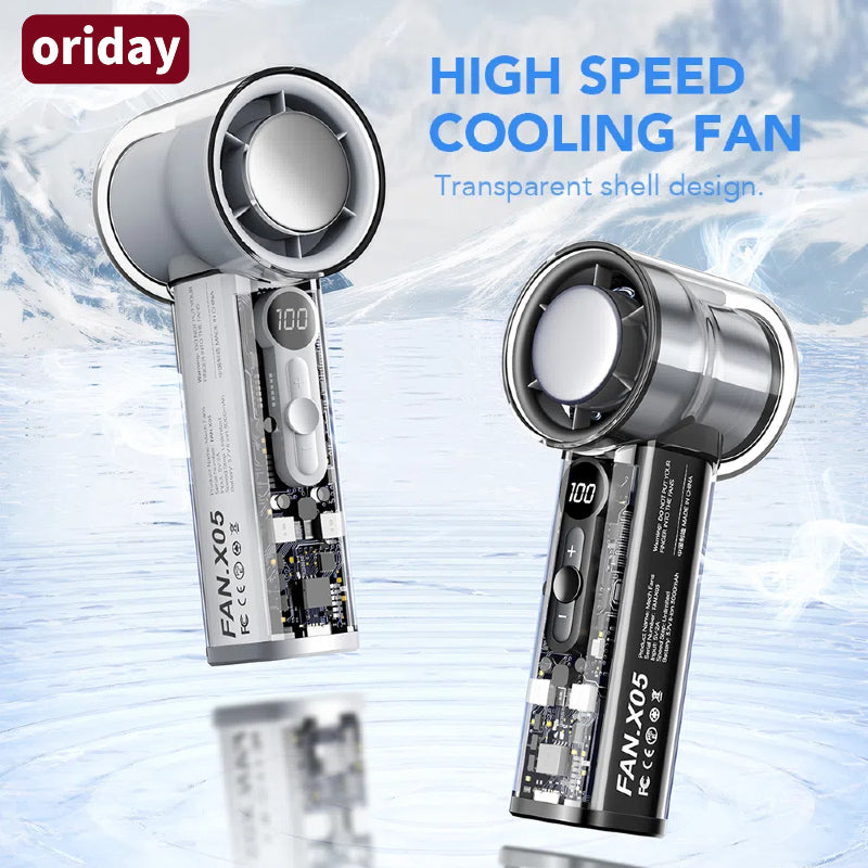 Oriday 高速手持ち冷却ミニファン、ポータブル、静音、USB充電式、デジタル表示、家庭用、寝室、オフィス、デスクトップ、アウトドアキャンプ向け、東方良品製