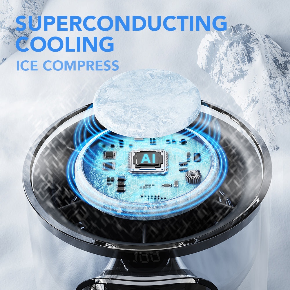 1. 超伝導冷却プレートで冷感、最大100段階の無段階調整、ターボブーストで強力送風;
