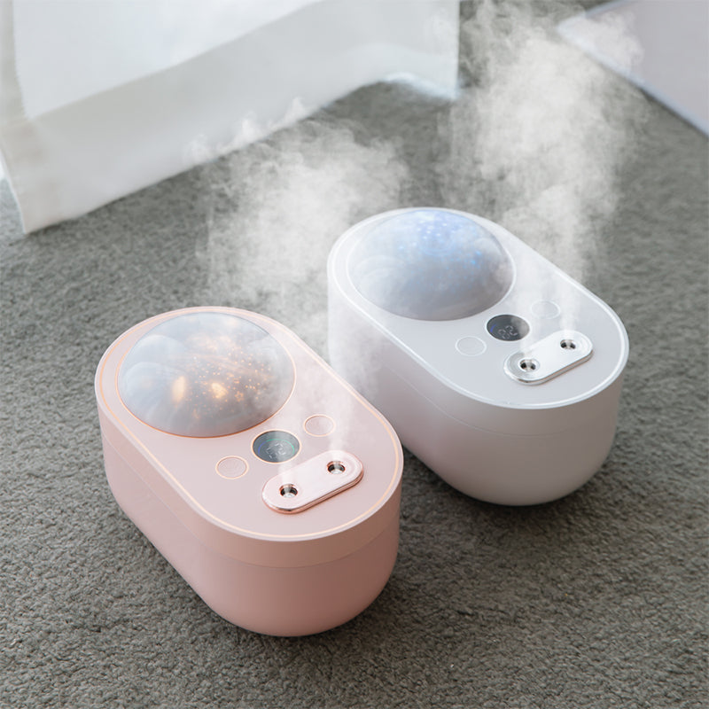 oriday スマートロマンチックダブルスプレー投影加湿器 小型ナイトライト オーシャンスカイランプ 創造的なデスク用ギフト