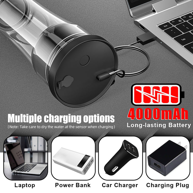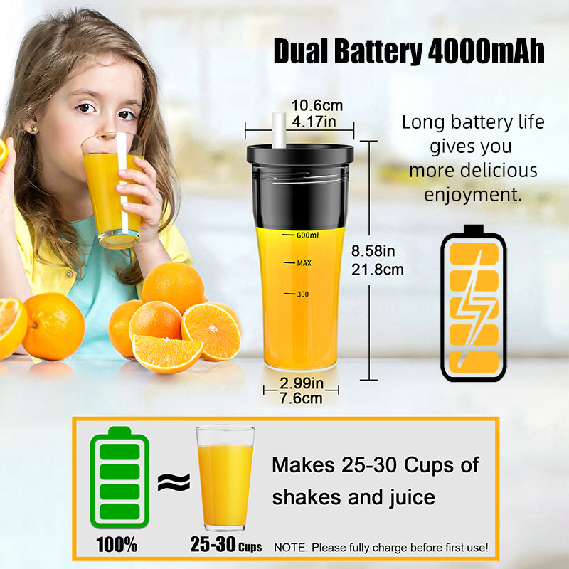 - 4000mAhの大容量バッテリー、満充電時に約12杯分のジュースを作れる、長時間のバッテリー持続;