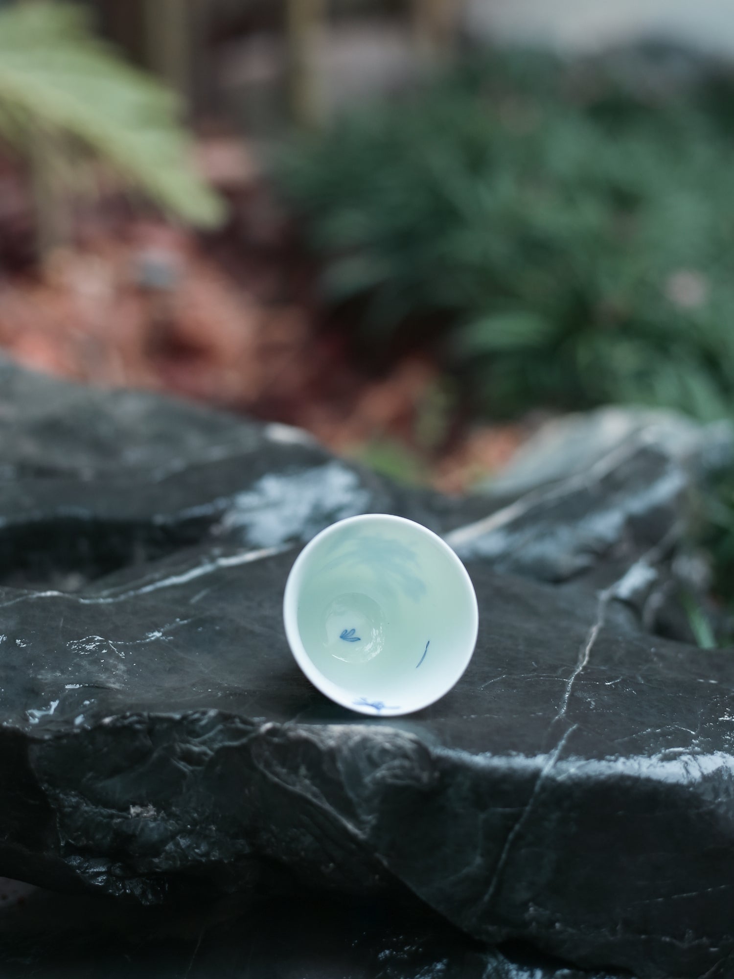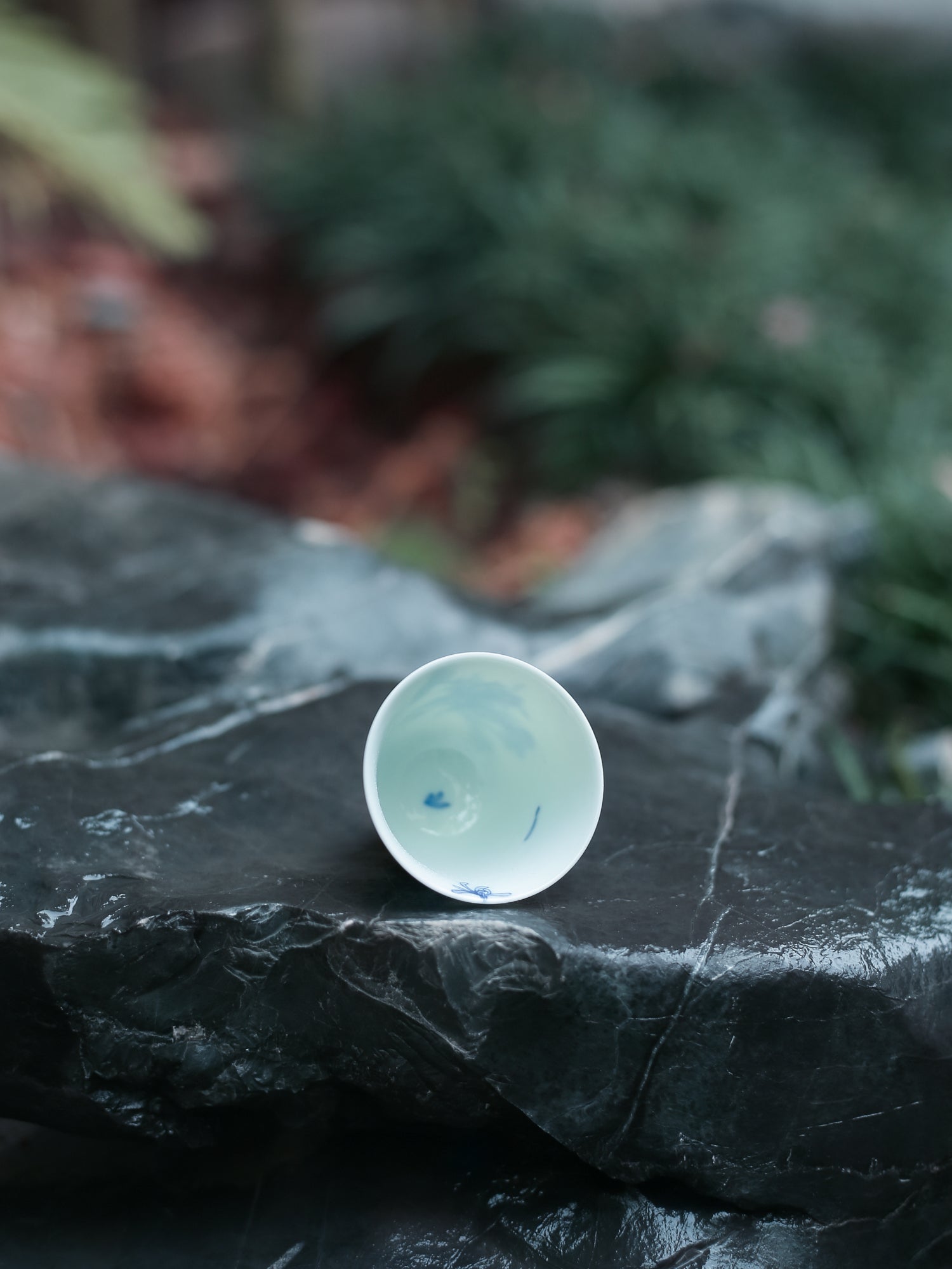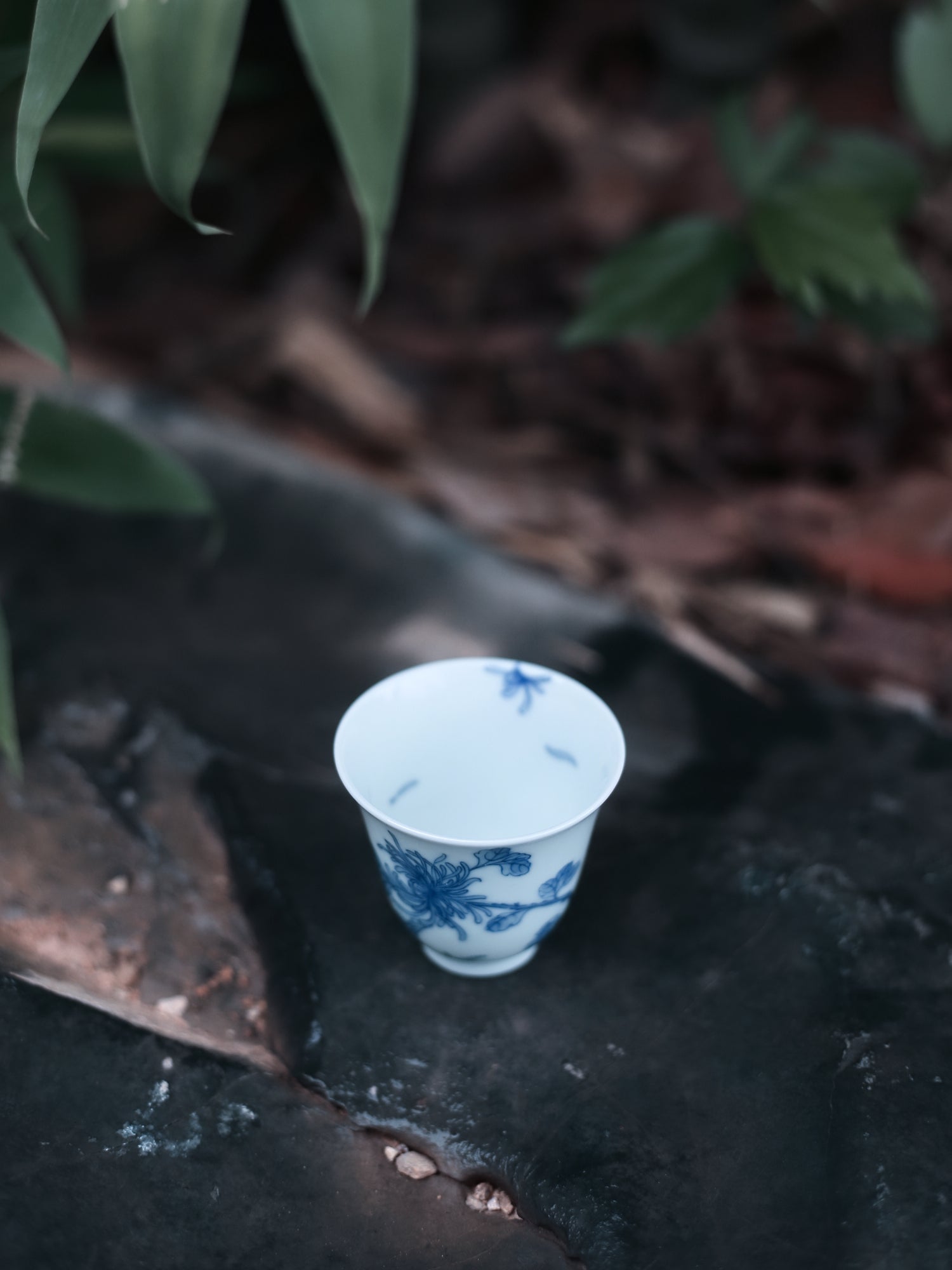 Ceașcă de aromă premium pictată manual Oriday Ceașcă de ceai pentru gazdă din porțelan albastru cu alb cu model de crizantemă Ceașcă de degustare pentru ceai Kung Fu