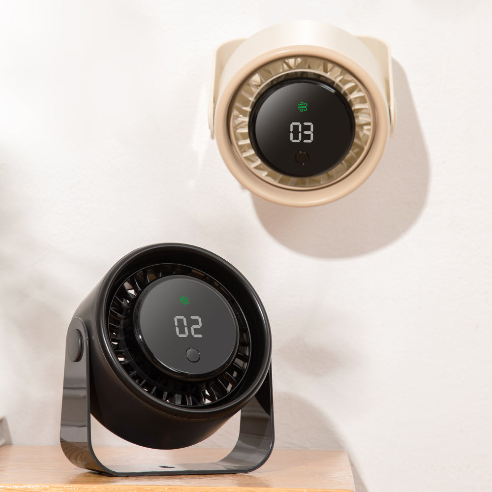 Oriday【ไอเทมคลายร้อนหน้าร้อน】พัดลมติดผนังและตั้งโต๊ะ 2-in-1 | แบตเตอรี่ชาร์จได้ 3000mAh ใช้งานยาวนาน | มอเตอร์ไร้แปรง เงียบ + หน้าจอ LED ดิจิทัล | เหมาะสำหรับแคมป์ปิ้ง/สำนักงาน | มีสีแอปริคอต/ดำ